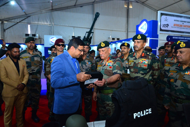 Gen Bipin Rawat, COAS, feeling the lightweight composite plate that is exported all over the World.